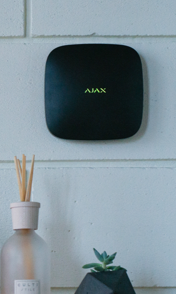 Хаб контролирует работу всех устройств системы Ajax. Он оповестит вас и охранную компанию, если случится беда.